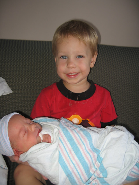 | Here is the first time Toby got to hold Griffin. I totally captured the event on film. How odd was it that I happen to be carrying my camera around. | ||