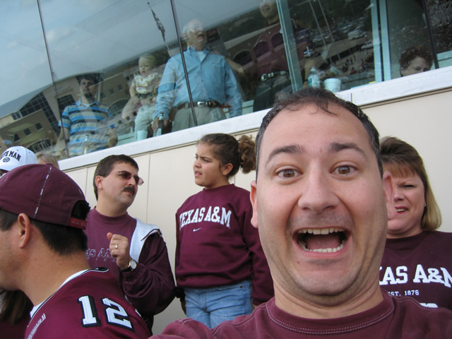 | So you've decided to check on the POD on a Saturday. We'll here is an extra bonus weekend picture for you. Here is my seat on the last row of the second deck at the A&M game the day after Thanksgiving. Can you guess who is the man in the maroon shirt in the expensive penalty box? | ||